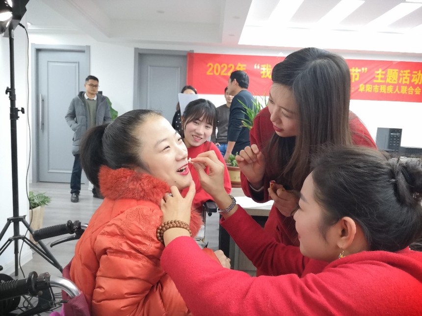残疾人事业的蓬勃发展,是社会文明进步的标志。 “全面建成小康社会,残疾人一个也不能少。”习近平总书记格外关心残疾人这个特殊群体的脱贫问题。 近年来,阜阳市残联通过扎实举措推动阜阳残疾人事业不断取得新成就。一批身陷贫困的残疾人,在一系列扶残助残政策帮扶下,或重新燃起生活希望,或奋发创业、脱困自强,书写出精彩人生篇章,点亮拥抱幸福生活的梦想。残联卓有成效的工作,也影响了社会各界的爱心人士。他们纷纷加入到关心支持残疾人事业的队伍中来。安徽华腾影视传媒有限公司就是其中之一。 2022年,虎年春节将至,安徽华腾影视传媒有限公司,有感于我市几位残疾人的励志故事,决定公益创作《翔虎贺”心“年》拜年视频,向残疾人这个特殊的群体拜年,表达社会各界对残疾人的关心支持。 创意很快得到了一批爱心人士的支持响应,虽然时间仓促,但所有参与人员投入了极大的热情,我市著名诗人张抱岩作词,阜阳市第十五中学李宇帆老师连夜对歌词进行谱曲,颍东区委宣传部,安徽省青年宣讲名师胡晓岚进行了文学指导。拍摄现场,阜阳市东城小学音乐教师张梅老师担任艺术总监,对所有演员进行动作编排、艺术指导。经过短短五天的准备,于1月28日下午,市残联领导专程莅临现场指导,在安徽华腾影视演播室完成拍摄,经过两天两夜的编辑、审定,两部拜年视频完美出炉。